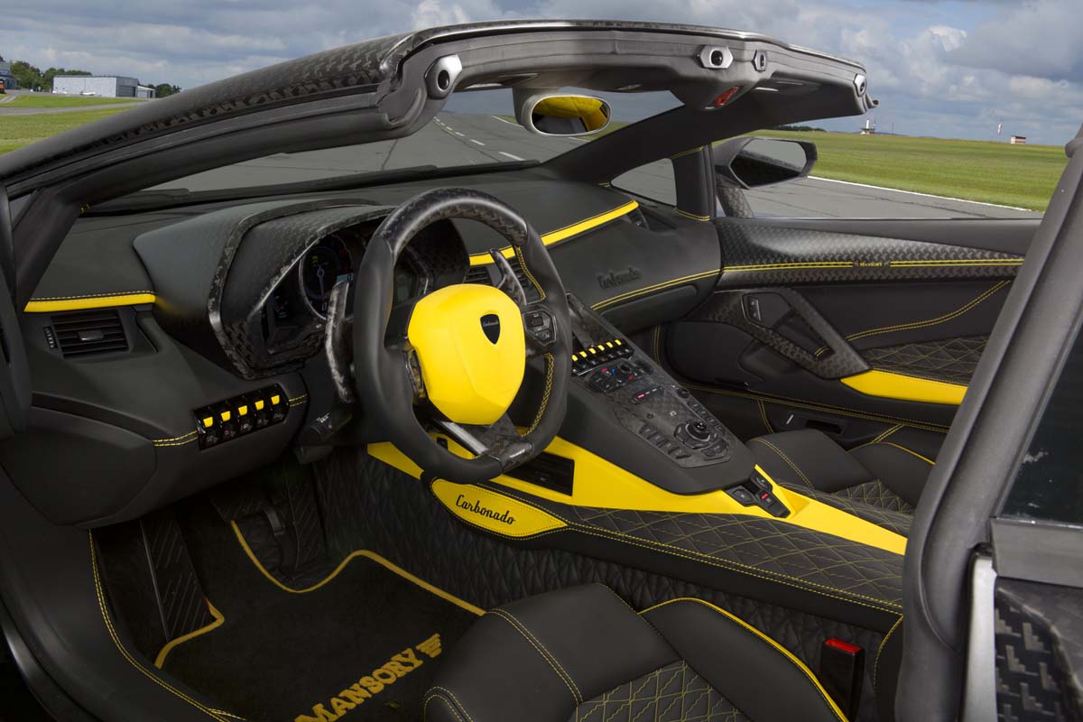 Mansory再造經典無人能及,Lamborghini Aventador LP700-4 Roadster敞篷版本的Mansory Carbonado全球將僅限量生產三台,Carbonado也是目前Mansory最昂貴的產品之一,全車如其名碳纖維包覆,連前後保險桿及寬體部分都是,尾翼也當然全採碳纖維打造,官方正式公布售價為120萬歐元。