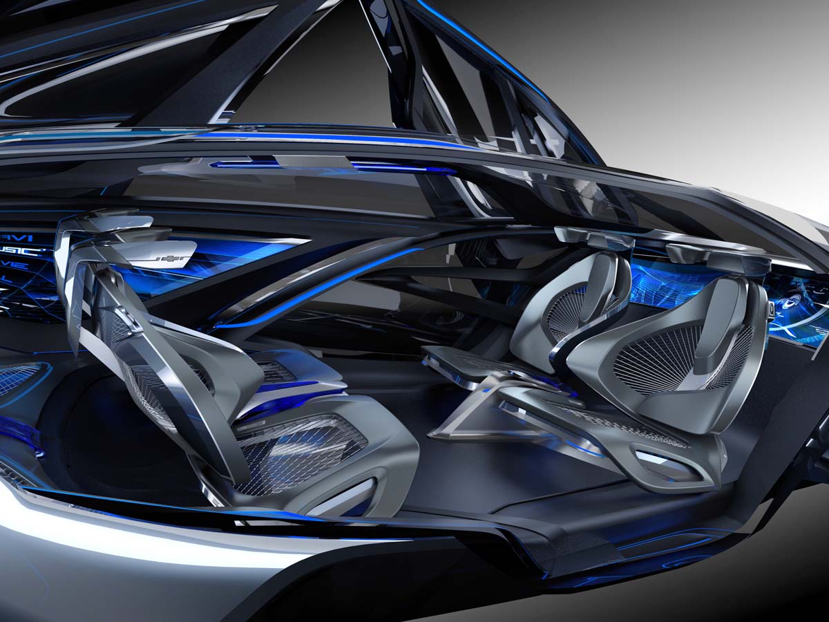 這款名為FNR的概念車,是由GM集團位於中國上海的PATAC汽車技術中心所負責操刀設計,其充滿強烈未來感的獨特造型是來自於「太空膠囊」的設計概念,整個車體結構乃以大面積的強化玻璃所構成,再搭配極具科技感的晶體雷射頭尾燈以及酷炫的蜻蜓式對開車門設計,塑造出無比科幻的視覺意象。