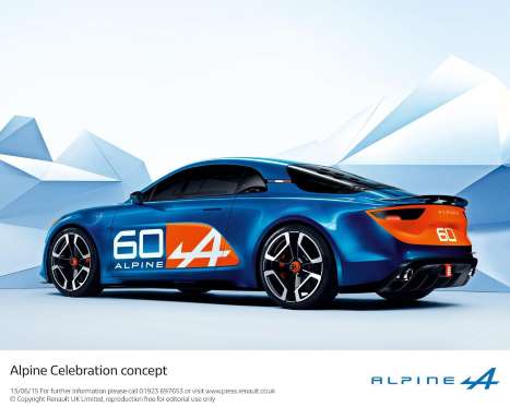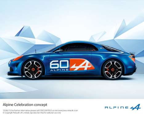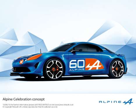 Alpine Celebration Concept是Apline特別為建廠60周年所設計的概念車,整個開發計畫是由Apline的總設計師Antony Villain,帶領15人設計團隊一同打造而成,主要的目標就是要設計出一款具有Alpine經典賽車DNA的現代化跑車。