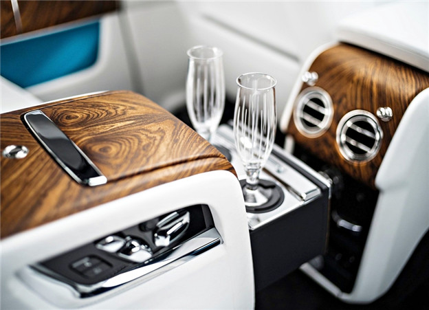 內裝陳設與第八代 Phantom 擁有相同設計語彙,左右對稱的設計帶來協調的視覺感,在品牌一貫的古典優雅氣息中融合了許多新穎科技,像是時下流行的虛擬數位儀錶,包含了夜視輔助系統、野生動物與行人碰撞警告、透過4顆鏡頭的環景攝影等安全配備一樣都沒有少,甚至還有 WiFi 熱點以及全車共5個USB插座。