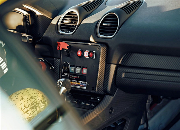 718 Cayman GT4 Clubsport 也是首款採用有機纖維複合材質的量產車,在門板、尾翼等處用上這由天然亞麻等農業副產品製成的材料,具有媲美碳纖維的輕量化與強度,造就僅 1,320kg 的輕盈身段 ; 當然也搭載包含 FIA 認證的防滾籠、前後牽引環、Recaro 賽車桶椅、六點式安全帶、車頂逃生艙口等一系列賽道配備。