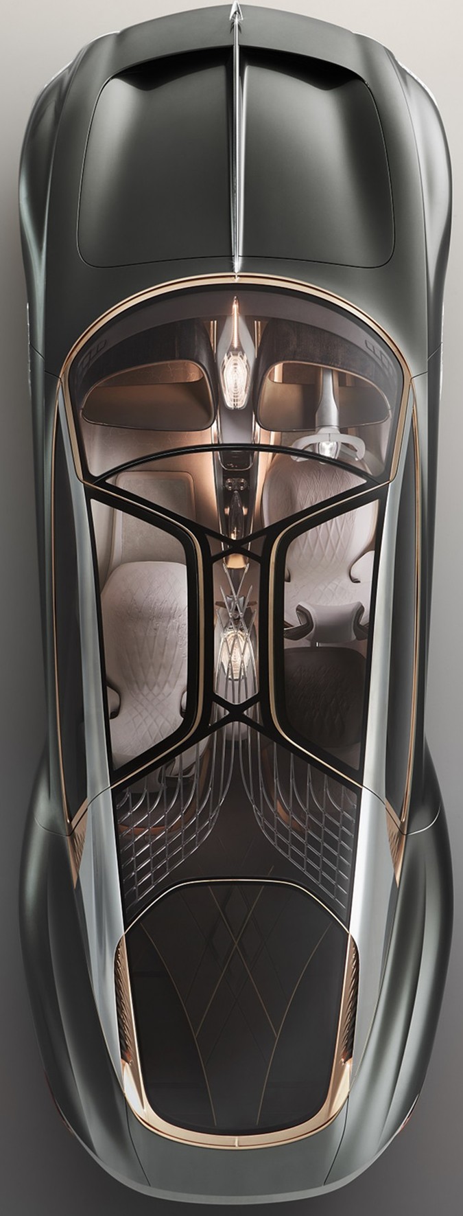 Bentley打造的這一款EXP 100 GT概念車,在外觀上顯得十分前衛,卻又極端豪華氣派。由於品牌認為,車輛不只是單純由生硬科技所組合而成的工具,更是一個充滿著感性元素的空間。融合過去100年在豪華汽車的設計和工藝積累,以經典識別DNA如車尾R字形、水箱護罩左右兩邊的圓燈、長車頭比例配置...等,讓概念車在展示前衛設計的同時,也能讓人輕易認出屬於Bentley的身分。