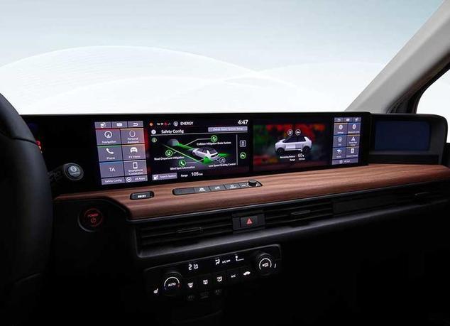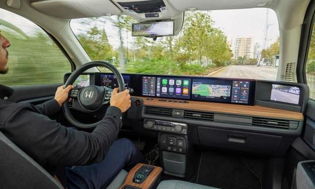 飾方面,本田e飾並不算豪華,織物座椅配合木質中控,中規中矩。飾最大的亮點就是中控台上方排列的5塊屏幕了,兩側屏幕均為電子後視鏡顯示屏,中間三塊屏幕由左至右分別為8.8英吋液晶儀錶盤、12.3英吋中控屏和第二塊12.3英吋中控屏。兩塊中控屏顯示界面為對稱設計,而且均設有可自定義設定容的快捷操作欄。