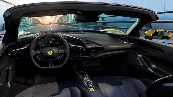 外觀方面,新車大體上與硬頂版的SF90 Stradale一致,車身尺寸方面,新車長寬高分別為4704/1973/1191mm,軸距為2649mm。前包圍上集成了主動式空氣動力套件,「戰斧」形狀的前鼻錐讓人聯想到F1賽車,增加新車車頭的下壓力。