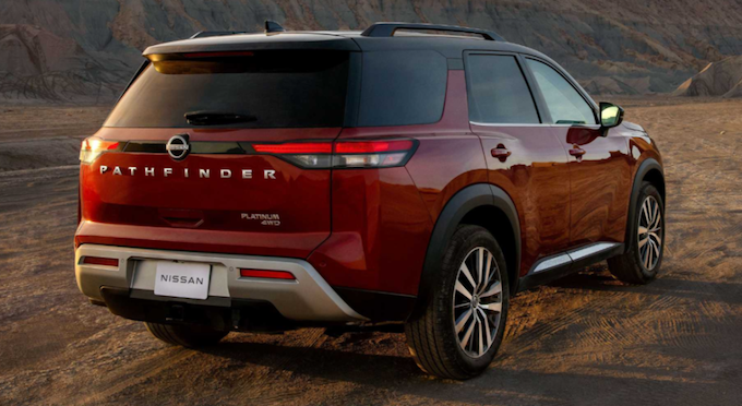 關於外觀方面,日產新一代Pathfinder的外觀採用了日產最新的家族式設計,V-motion的前鬼面罩以及兩側採C型設計大燈組顯得殺氣十足,前大燈組採用了LED作為主光源更貼合潮流,新Pathfinder強調潮流和個性,新車一共提供14種車身顏色,其中包括五種雙色車身也是在Pathfinder車系上首次出現。